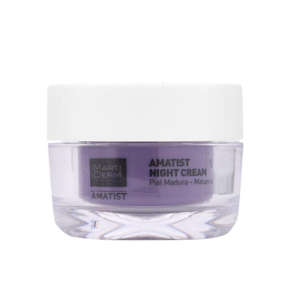 Amatist es una nueva gama dedicada especialmente a las pieles maduras que se conocen, se valoran y no necesitan retroceder en el tiempo, sino sentirse y verse luminosas y vitales. Amatist Night Cream, con proteoglicanos, phyto-retinol, rosa mosqueta y omega 3, 6 y 9 nutre y revitaliza la piel durante las horas de descanso.